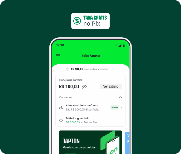 Tempo é dinheiro: Menos tempo perdido com burocracia, mais tempo vendendo. Com o Ton, você recebe com taxa baixa e sem complicação