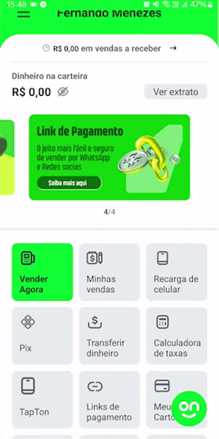 Acesse Links de pagamento na tela inicial do app do Ton.